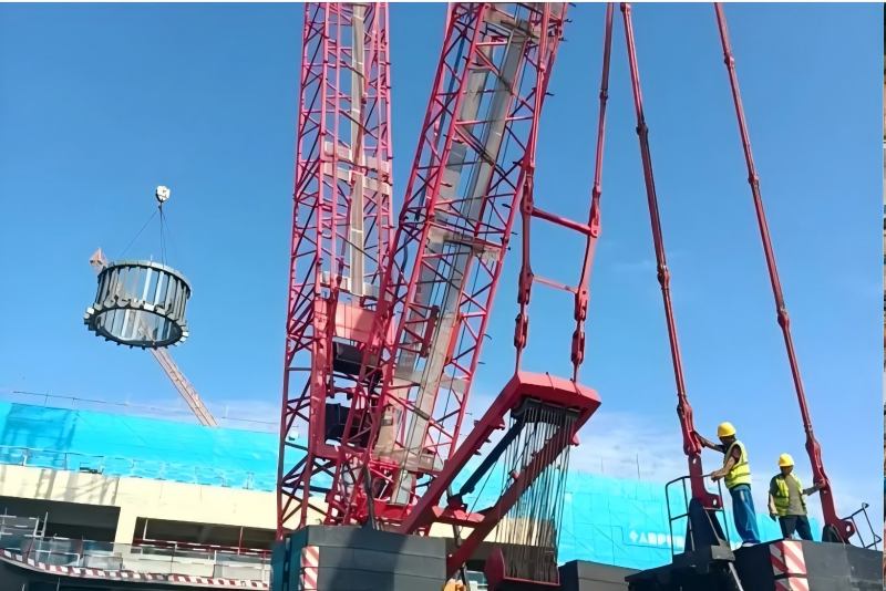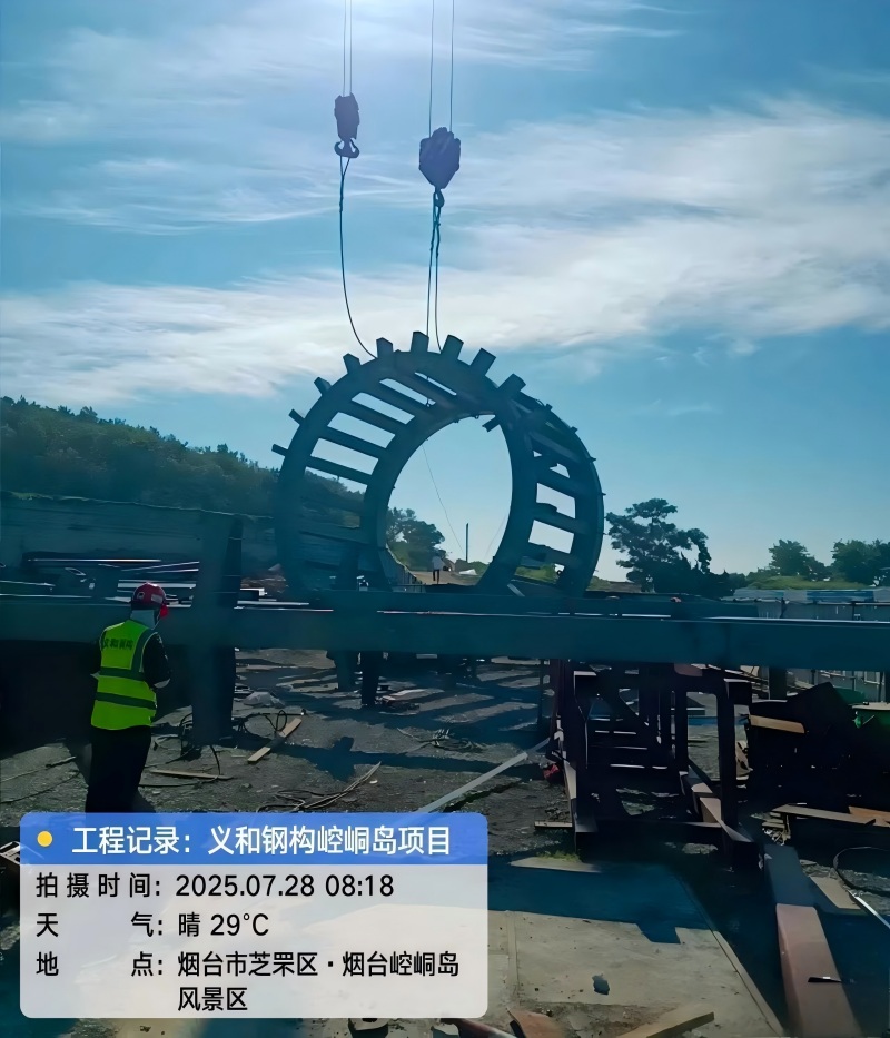 Viru kuerzem ass den Dongyou Projet vum Kongtong Scenic Area, deen e Schlësselpunkt Kultur- an Tourismusprojet an der Yantai City ass. Et gouf e wichtege Baumeilesteen erreecht - d'Hie vum kreesfërmegen Trussstrahl vum Theaterzentrum. Op der Plaz, wéi de 650-Tonnen Crawler-Kran lues eropgeet, gouf de 24-Tonnen kreesfërmege Trussstrahl am Kärberäich vum Theater präzis gehuewen. Dësen Theater, deen den orientaleschen Mythos opféiere wäert, huet offiziell seng "Stol Réckemuerch". Dëse Schlësselprozess markéiert e wichtege phaséierte Fortschrëtt am Bau vun der Stolkonstruktiounstechnik a schaaft gënschteg Konditioune fir den uerdentleche Fortschrëtt vum ganze Projet.