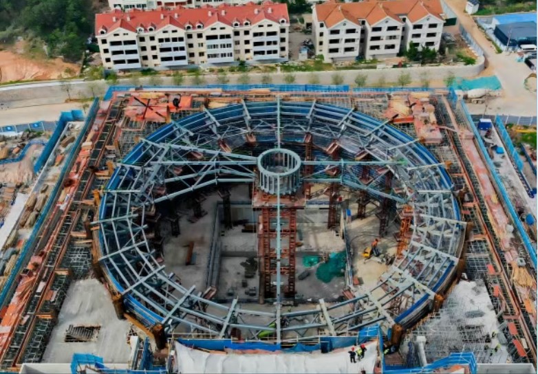 Als Kär-Laaschtstruktur vum Theater ass d'Installatioun vum kreesfërmege Trussstrahl d'Haaptprioritéit vun dëser Konstruktioun. Dëst Truss huet eng breet Spannung a grousst Gewiicht, während dem Prozess, de Prozess involvéiert villen Erausfuerderungen ze iwwerwannen, wéi Héich-Héicht Operatiounen a präzis Ausriichtung, grouss Hebeausrüstung gouf benotzt fir Millimeter-Niveau Positionéierungsgenauegkeet ze garantéieren. Dës Präzisioun huet eng stabil Ënnerstëtzung fir d'Dachstruktur vum Theater geliwwert.