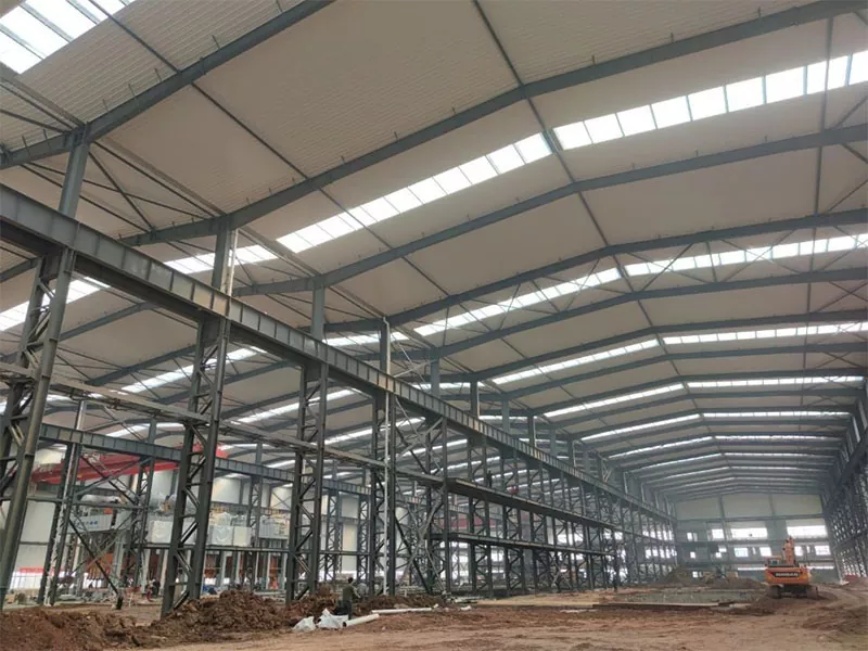 D'Stahlkomponente vum Lager, dorënner Trägere, Sailen, Klameren, an Dachstécker, ginn an engem Fabrécksëmfeld mat qualitativ héichwäerteg Stol prefabrizéiert. D'Komponente ginn op präzis Spezifikatioune fabrizéiert, fir datt se präzis a sécher an der Installatioun passen.