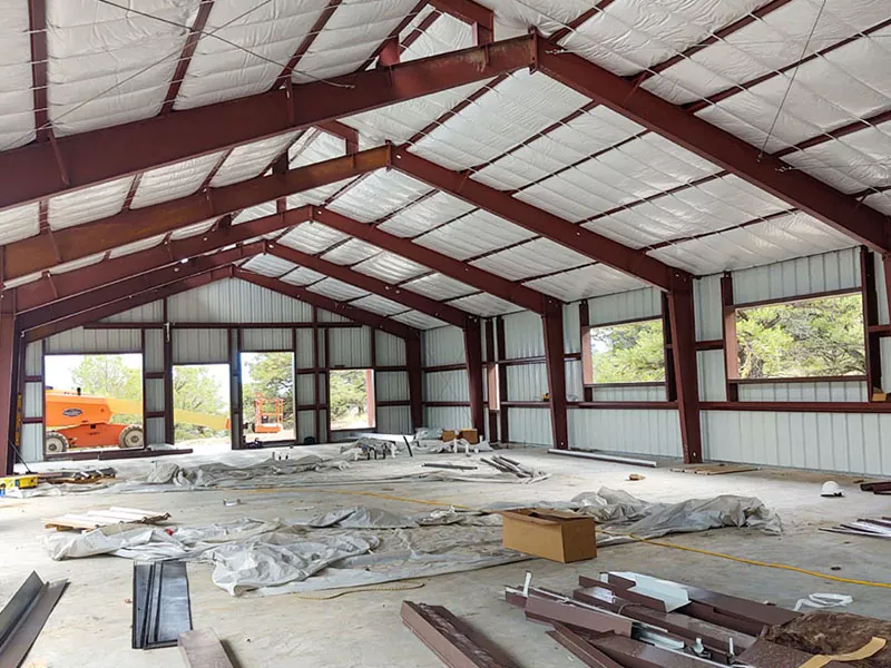 Daach an aus baussenzege Klauen:Wann de Stol Frame komplett ass, ass den Dausystem installéiert, normalerweis besteet normalerweis aus ividéiertem Metallpanels oder Single Mandbrikermaterialien. Aschlosser Maueren, wann och am Design abegraff, sinn och mat Hëllef vu Mannerjäregspannten oder Zille oder Mauer.