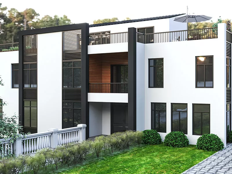 Préfabrizatioun: De Schlësselaspekt vun der Prefabrizéierung ass d'Fabrikatioun vu Baukomponenten an engem kontrolléierten Ëmfeld, ier d'Versammlung op der Plaz ass. Dëst erlaabt méi Präzisioun, Qualitéitskontroll a méi séier Bauzäit. De liichte Stahlrahmen an aner Komponenten vum Villahaus si prefabrizéiert, sou datt se nahtlos matenee passen a minimal Upassunge bei der Installatioun erfuerderen.